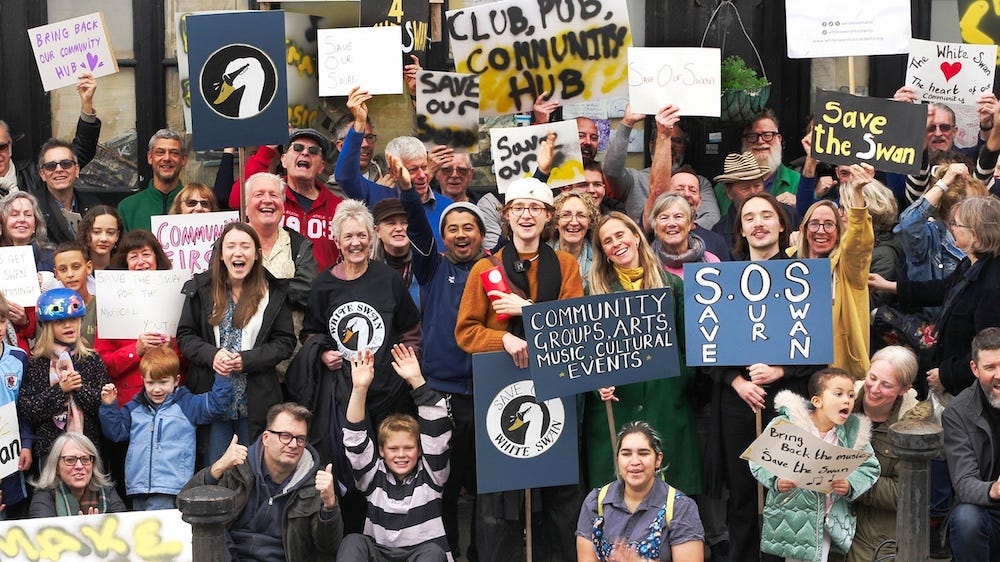 But the good burghers of Charlton aren’t taking the closure of the Swan lying down. They’ve banded together and formed the White Swan Music and Arts charity to crowdsource enough money to buy it from the current owners and open it as a pub and music and arts venue.